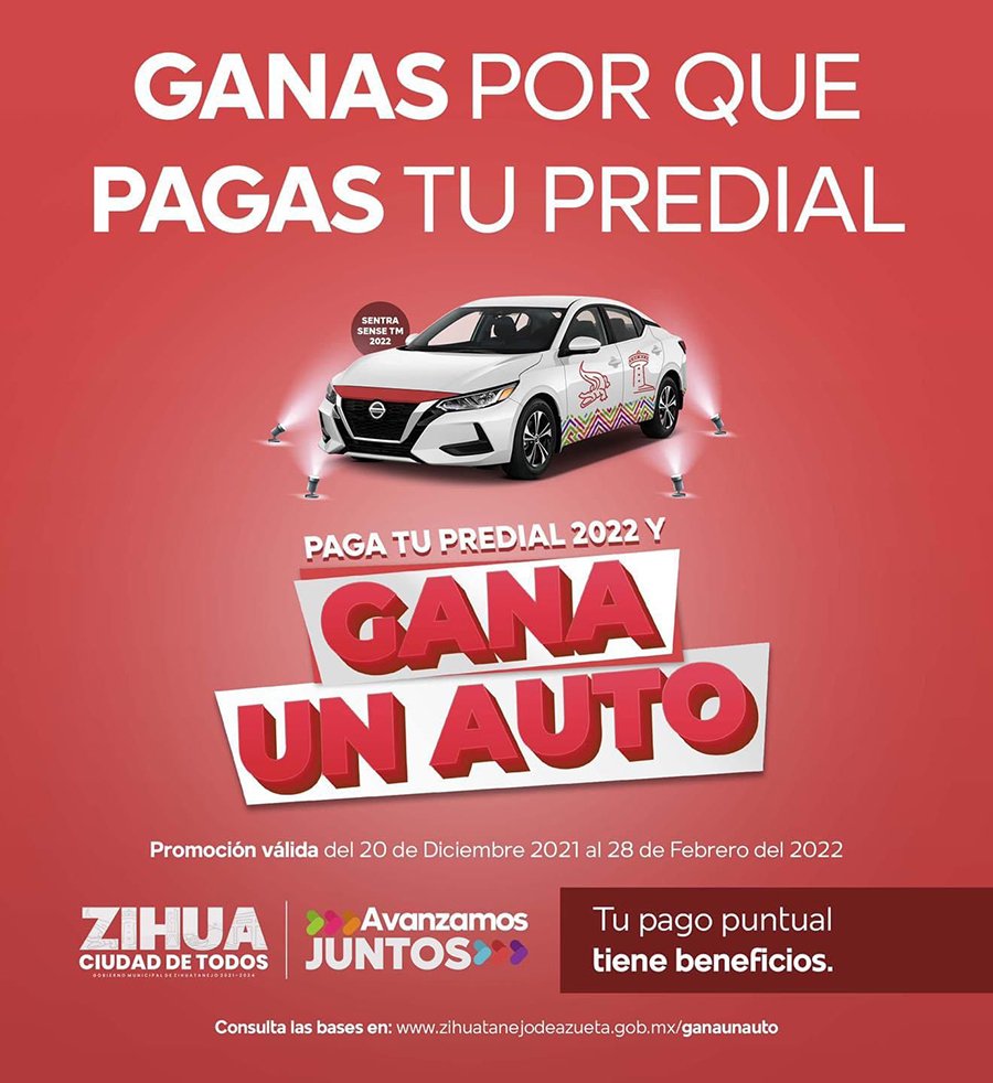 Gobierno de Zihuatanejo sorteará automóvil para contribuyentes que estén al corriente con sus pagos de Predial.