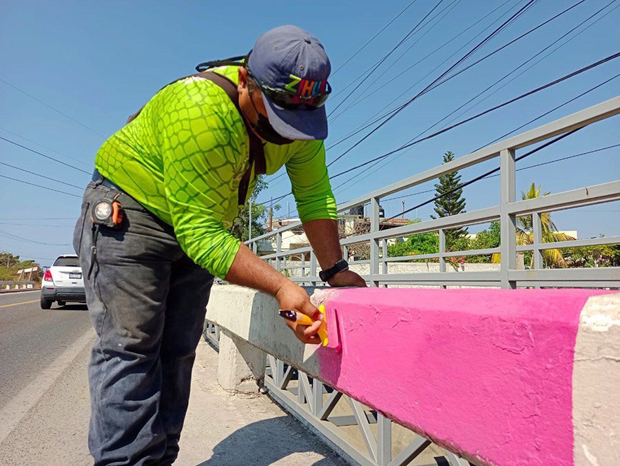 Zihutañedor,Gro,A 17 de Enero del 2022.-El programa Zihua al 100 está dando resultados a la brevedad y prueba de ello es que siguiendo las indicaciones del presidente Jorge Sánchez Allec, personal de Área Técnica de la dirección de Servicios Públicos tiene a Zihua como nunca antes de había visto. Se están llevando a cabo trabajos de remozamiento con pintura en banquetas, guarniciones, jardineras, postes metálicos, puentes peatonales y viales.