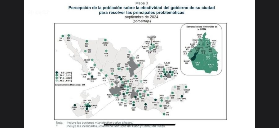 En la encuesta realizada entre personas de 18 años o más, estas consideraron que el gobierno de su ciudad era muy o algo efectivo en resolver los problemas más importantes.