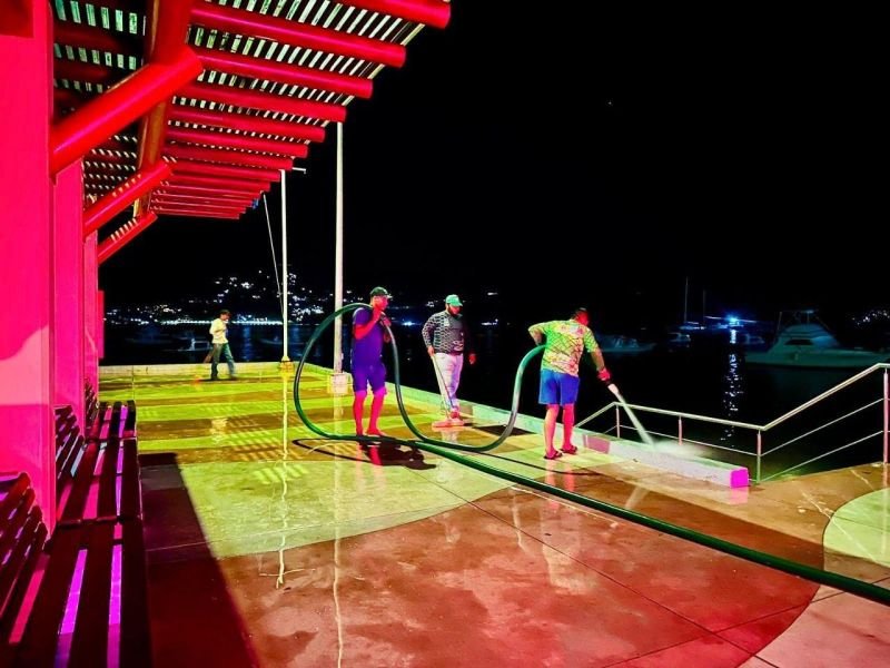 Por último, el director compartió que de manera programada se realiza el lavado de suelo en estos espacios públicos en colaboración con el departamento de Limpia y Parques y Jardines, tal como se hizo recientemente en el Muelle Principal y Cancha Municipal previo a recibir el primer crucero del 2025.