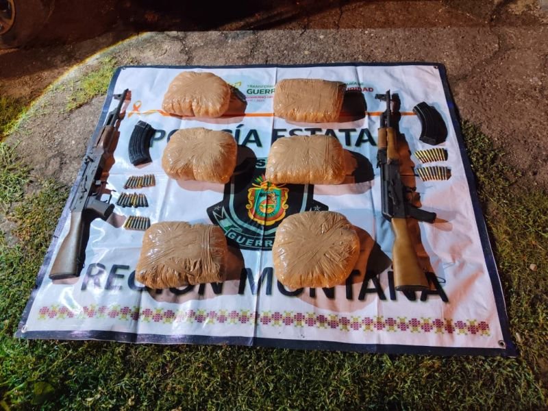 Chilpancingo, Guerrero; 19 de agosto de 2025. La Secretaría de Seguridad Pública del Estado de Guerrero, como parte del fortalecimiento de las acciones de seguridad e inhibición del delito en la Región Montaña, logró el aseguramiento de armamento, presunta droga y un vehículo en el municipio de Tlapa de Comonfort.