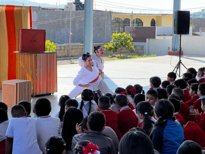Chilpancingo, Gro., 28 de octubre de 2025.– Para acercar el teatro, la danza a niñas, niños y jóvenes de educación básica, la Secretaría de Cultura del Gobierno de México, a través del Instituto Nacional de Bellas Artes y Literatura (INBAL) y el gobierno del estado, así como la Secretaría de Cultura Estatal pusieron en marcha el Programa Nacional de Artes Escénicas en tu Escuela en la Primaria “Eucaria Apreza García”, de Chilpancingo.