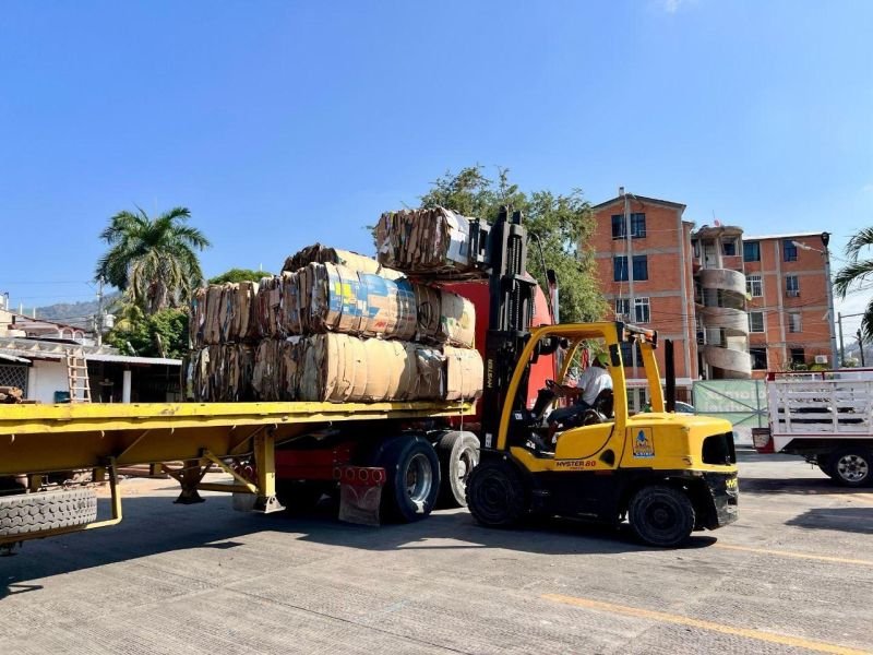 Una vez recolectados los materiales, el vidrio se clasifica por colores y el cartón se compacta en pacas, realizando tres embarques de cartón al mes y uno de vidrio cada tres meses.