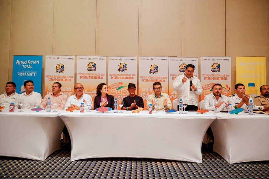 El secretario general del Ayuntamiento, Juan Manuel Juarez Meza con la representación oficial del presidente Jorge Sánchez Allec, junto con autoridades deportivas y de gobierno, así como representantes del sector turístico, inauguró este miércoles el Festival Internacional de Surf Ixtapa-Zihuatanejo 2022, que es operado por el Consejo Mexicano de Turismo Deportivo y que forma parte de las actividades de la Cumbre Deportiva Guerrero 2022, constará de tres eventos a desarrollarse durante dos semanas en la zona de playa Linda, con más de 600 participantes nacionales y extranjeros.