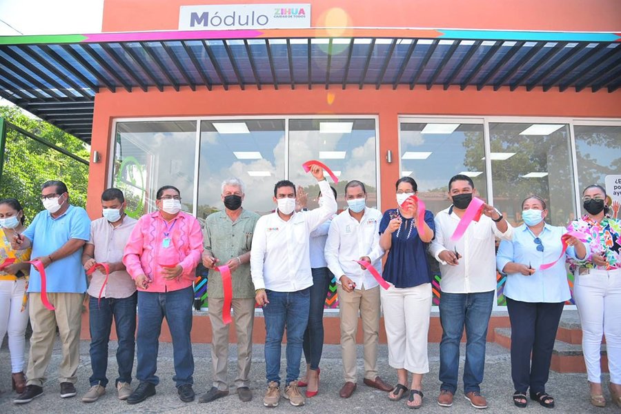 Zihuatanej,Gro.- El presidente Jorge Sánchez Allec, junto a su esposa Lizette Tapia Castro, integrantes de la Comuna, directores de áreas municipales, dirigentes de colonias y autoridades comunitarias, inauguró este miércoles el Módulo de Atención Ciudadana, a través del cual se están fortaleciendo los vínculos entre el gobierno de Zihuatanejo de Azueta y la ciudadanía.