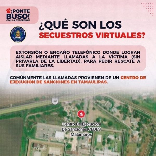 En ese sentido, mediante acciones operativas implementadas en dicho municipio, se identificó que el origen de las llamadas provenían del Centro de Ejecución y Sanciones (CEDES) ubicado en Santa Adelaida, Tamaulipas; explicándole al familiar que se trataba de un “secuestro virtual” (engaño telefónico), haciendo de su conocimiento que no realizaran ninguna transacción o depósitos en tiendas de conveniencia.
